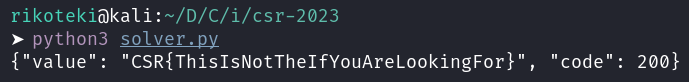 これがわかったら、正しいクッキーとヘッダを設定して送信するだけでフラグが得られます。